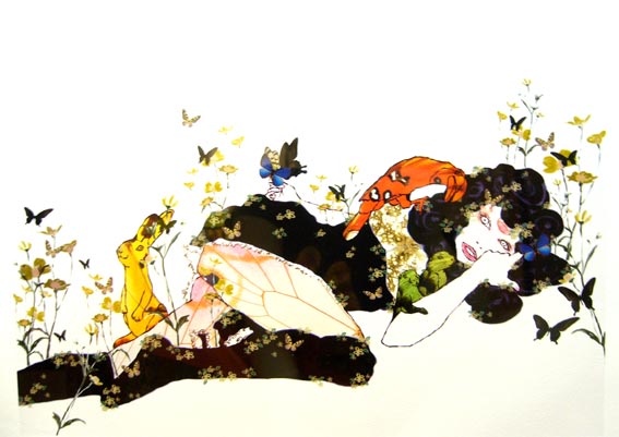 装飾的な表現と鮮烈な色彩が目に残る、洒落た感覚の作品。