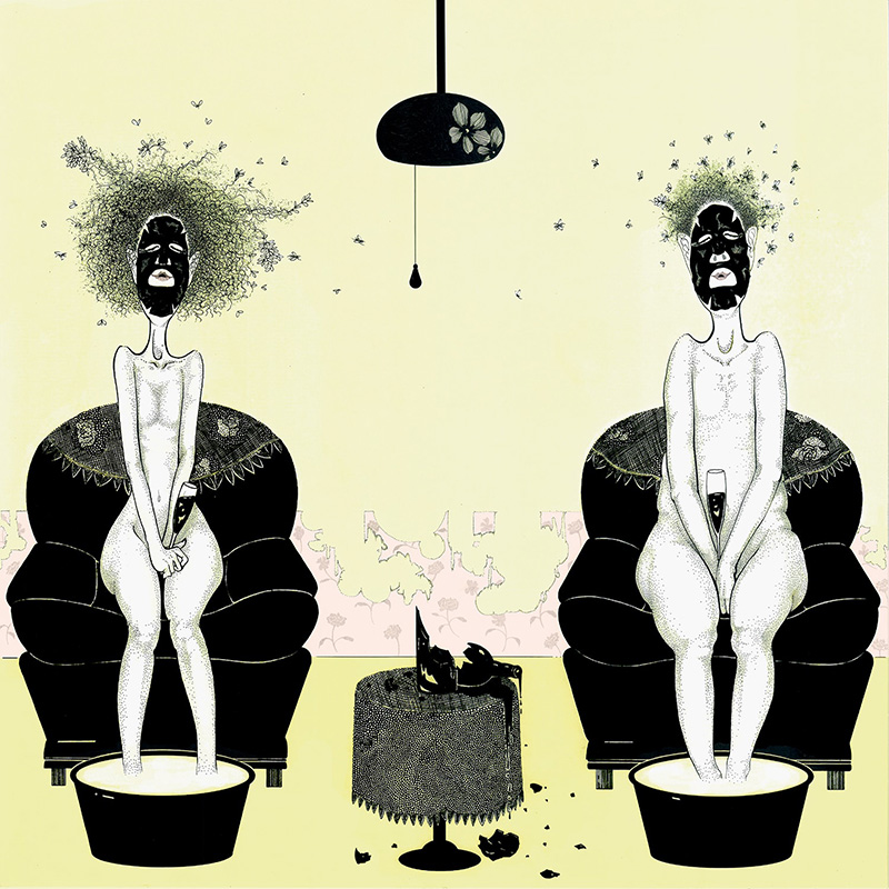審査員評このインパクトは強烈だった。衝撃度でいったらトップの作品だ。一度見たら忘れられない。 小林正直(二科会デザイン部会員) 今年の猛暑のような、うだるような熱気と腐臭と倦怠感が伝わってきます。 田中淑恵(ブックデザイナー) 極細のワイヤーの束を捏ね回したようなヘアースタイルが印象深いイラストです。 増本大二郎(二科会デザイン部会友) 独自のキャラクターが確立していて、個性がはっきりとした作風。 山本さと子 (版画家) キャラクターが非常に個性的でインパクトが強いです。 蟹江隆広(日本イラストレーター協会 会長) |