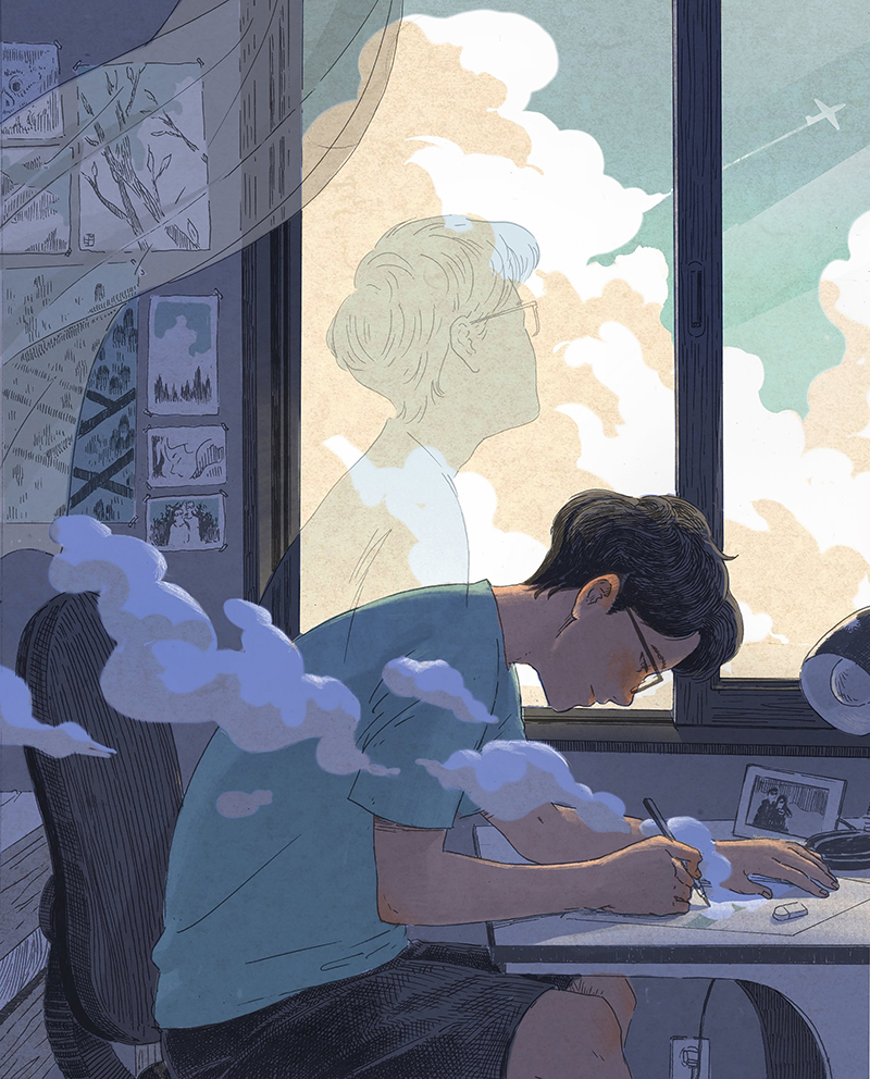 審査員評Great stylization of figures. Lisa Falkenstern The pictures make you dream and the colour pallete inspires peace. Joao vaz de Carvalho Good overall skills with people and backgrounds and movement. Greg Paprocki 想いを馳せながら机で書きものをしている絵を高く評価しました。 下山久美子 "Beyond"は一見海辺で恋人と手をつないで立っているシーンかと思えば、実は彼女はキャンバスに描かれている絵であるという発想が面白いと思います。 蟹江隆広 |