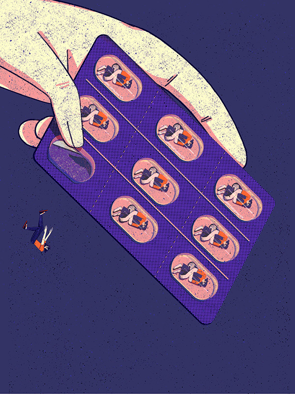 審査員評Really communicative artwork, with a really nice use of a limite colour palette. Sara Ugolotti Perfect illustrations for editorial. Male Cuellar Yu Zhang challenges our mondern life with clever illustrations of people as analogues to unhealthy "quick fix" solutions. Steve Argyle 暗澹とした配役の物憂げな表情がドキッとさせます。 増本大二郎 女性をジグソーパズルにしたり、薬のカプセルにしたり、ピルに埋もれさせたりという発想と表現方法もユニーク。 蟹江隆広 |