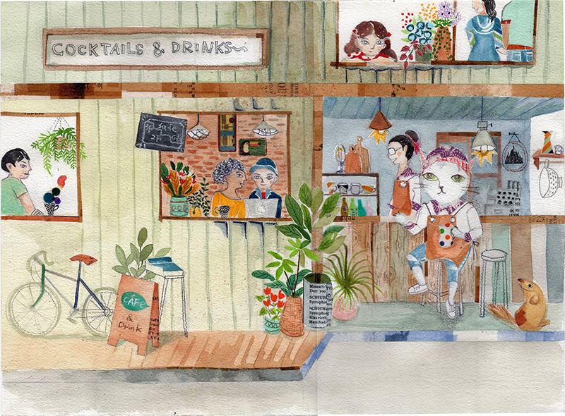 illustrations. Sara Ugolotti The combination of collage and pencil gives a lot of uniqueness to your work. Male Cuellar What's not to love about cats living human lives? Steve Argyle 右目の少し大きなネコのキャラクターが非常に独創的です。 増本大二郎 ネコのキャラクターが良い味を出している。 蟹江隆広 |