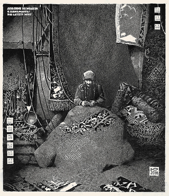 used art supplies or application softInk drawing, edding, acrylic color (white), digitally remastered Artist commentsAll drawings are inspired by literature: