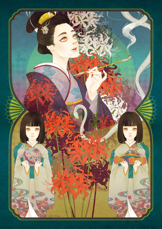 審査員評Beautiful color combinations with great eye for detail. Steven-Van-Hasten Character expression is fun and very interesting. Amire Alaei Clear coloured shapes and a soft palette of colours create an unique atmosphere of these illustrations. Laimute-Varkalaite Ichicono's delicate lines and pattern work are exquisite. Tran Nguyen トラディショナルな日本の美の中に新しいエッセンスを加えて、独自の世界を創り上げている。 蟹江隆広 |