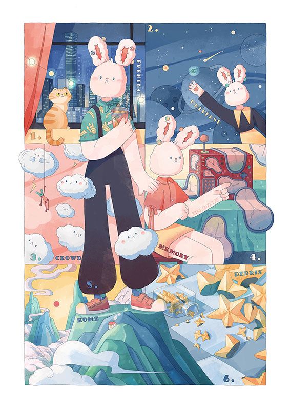 審査員評Well balanced structures and compositions. Sigal Caspin Segal It has a refreshing image with excellent modeling skills. Yidong Cai This work is fascinating, the stylization and personality of the characters is beautiful. Jose Sanchez The artist has expressed daily life and imagination in a cute and beautiful way. Eunbi Kang There were two patterns in terms of style, and I felt that both were put together at a high level. The Little Theater in My Head" series is particularly interesting in its composition and layout, and the mysterious space is fascinating. Mayuko Utanishi |