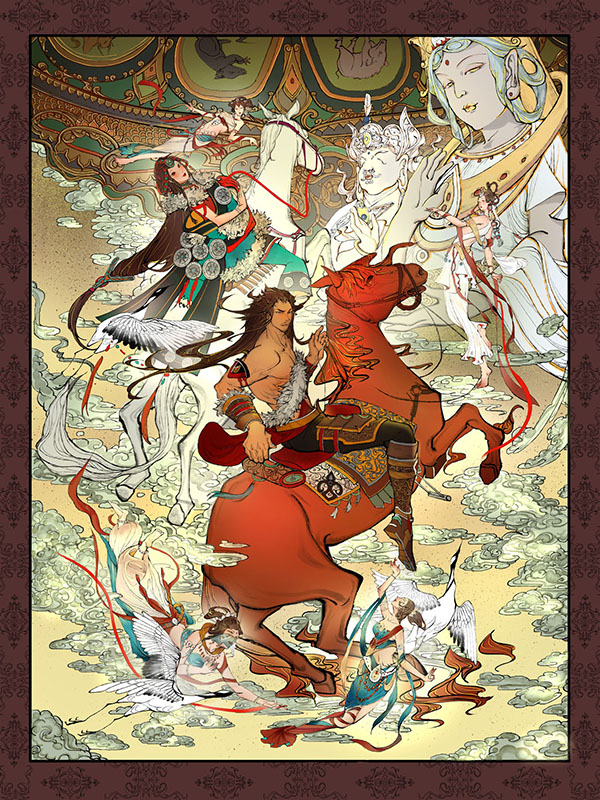used art supplies or application softCSP Artist commentsThe theme of this creation is the Chinese Tibetan hero epic "King Gesar", and the illustrations revolve around four epic stories: "Horse Racing King", "Snow Mountain Crystal Gang", "Hell Saves Wife", and "Three Realms of Stability". |