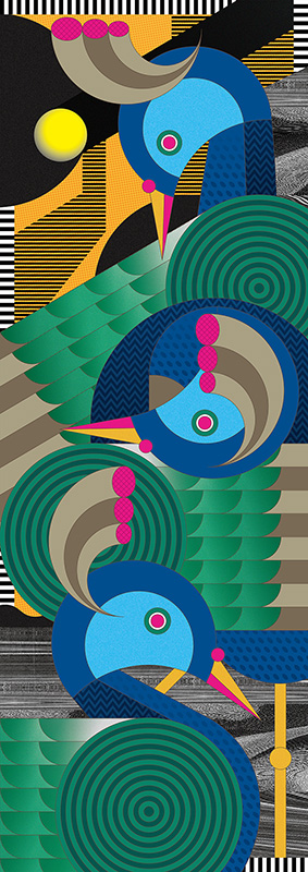 used art supplies or application softAdobe Illustrator Artist comments"Birds under the Moon" is the starting point of this series of works. |