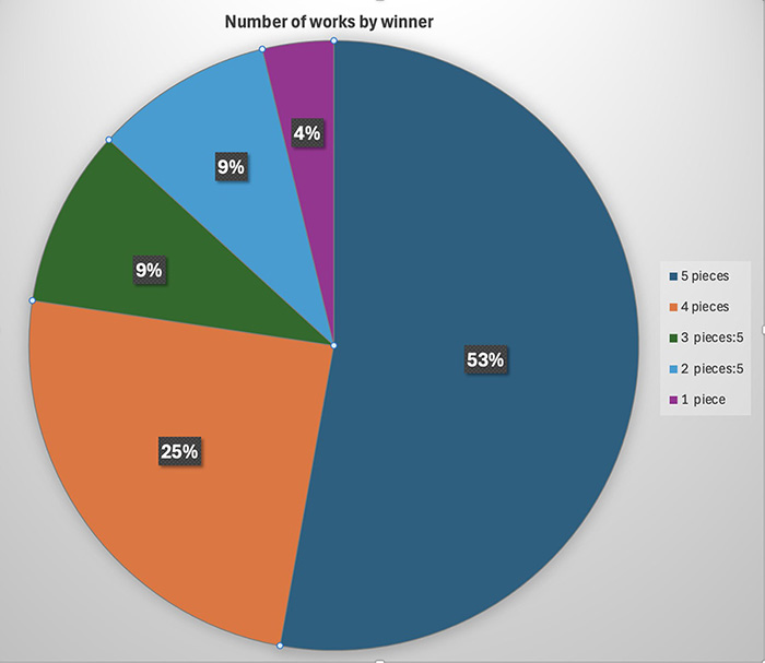 We received a lot of entries from all over the world, with 283 applicants and 802 works.