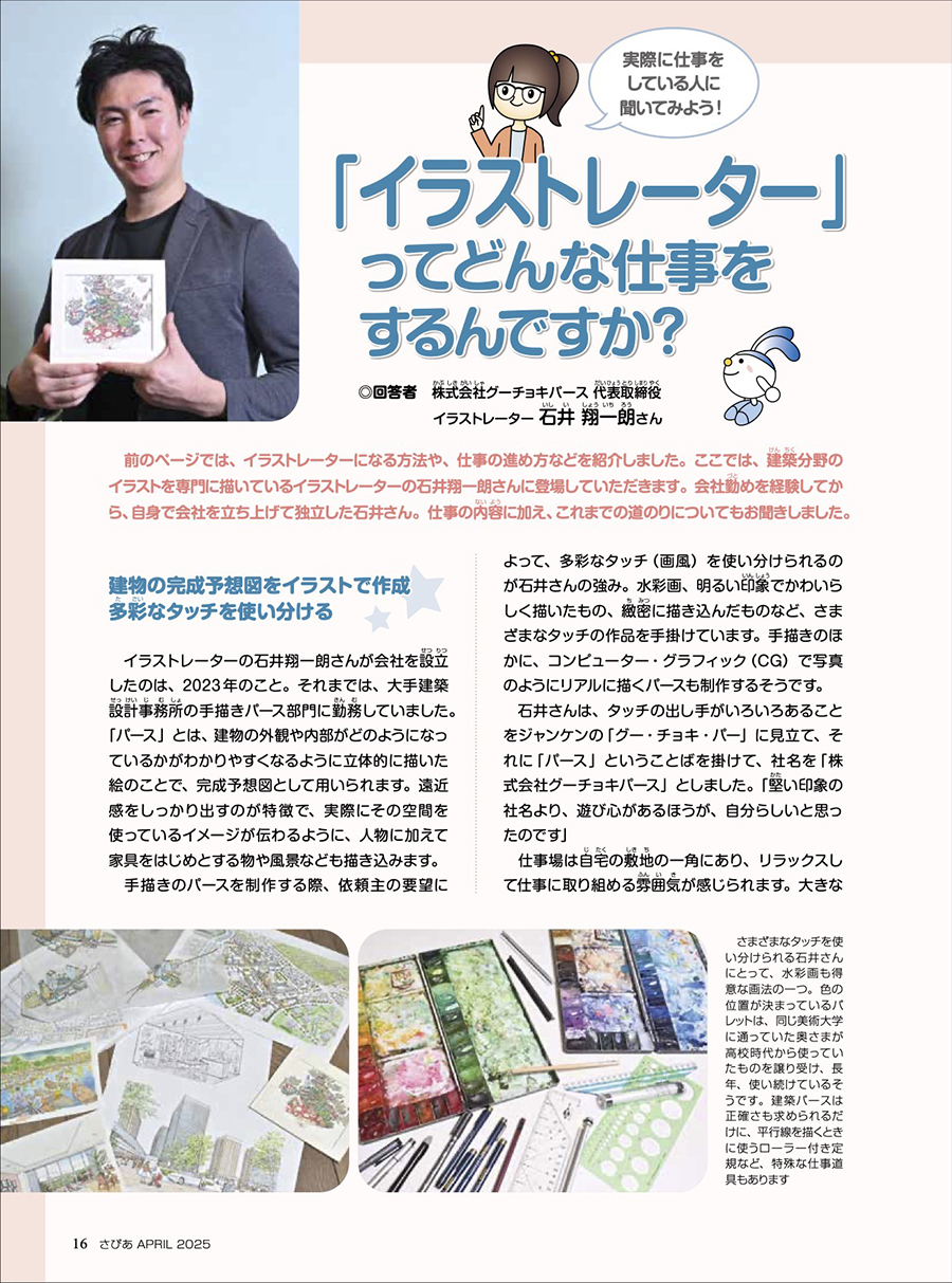 蟹江氏に対してはイラストレーターになる方法や仕事の進め方などが主な内容です。