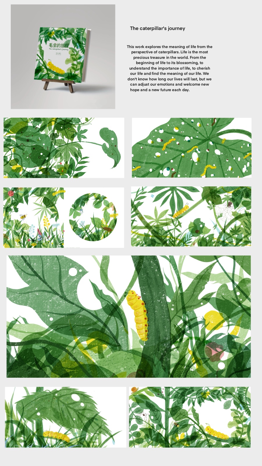 The name of the clientShape Studio The media in which the illustration usedPicture book Artist's commentsThis work is a wordless picture book, exploring the meaning of life from the perspective of a caterpillar. この作品は、いもむしの視点から人生の意味を探る、言葉のない絵本です。 |