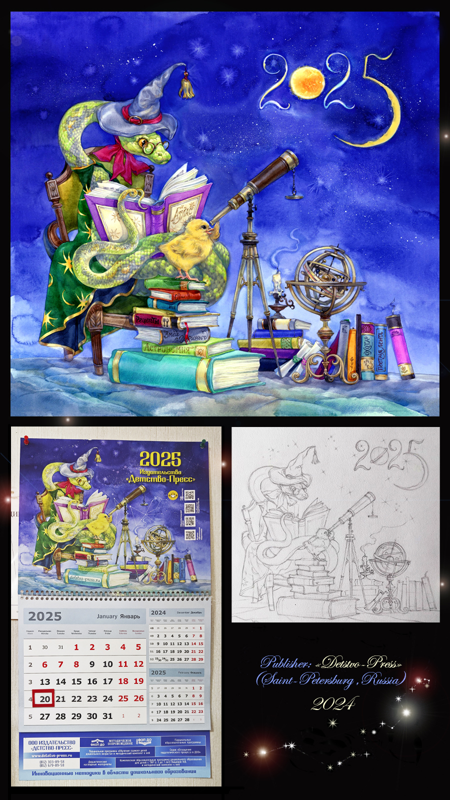 The name of the clientPublishing house "Detstvo-Press" The media in which the illustration usedThe cover for the promotional calendar for 2025 Artist's commentsThe publishing house "Detstvo-Press" (Saint Petersburg, Russia) specializes in children's developmental and educational literature. 出版社「Detstvo-Press」(ロシア、サンクトペテルブルク)は、子どもの発達と教育に関する書籍を専門としています。 |